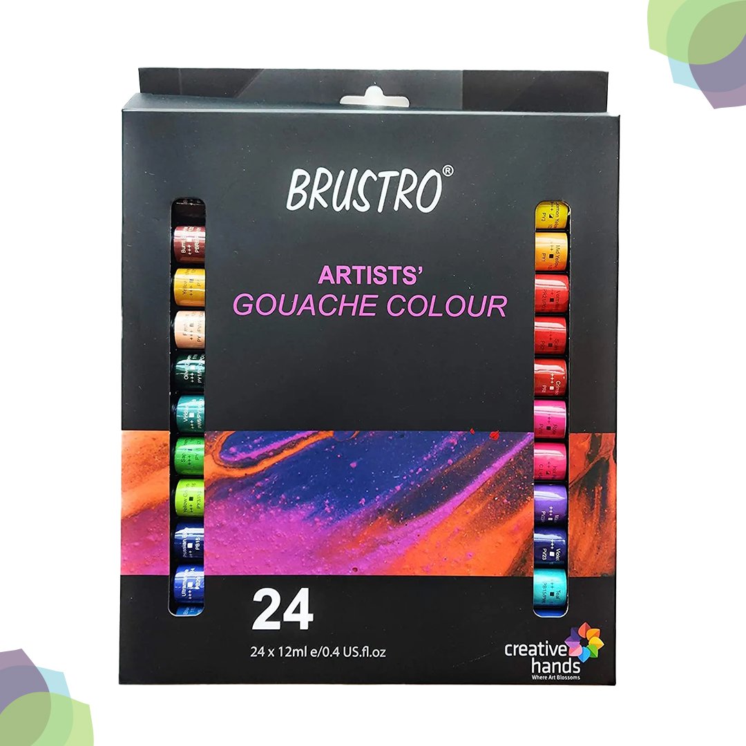 BRUSTRO Artists' Gouache Set of 12x12ml, BRUSTRO Artists' Gouache Set of 24x12ml, BRUSTRO Artists' Metallic Gouache Set of 18x12ml