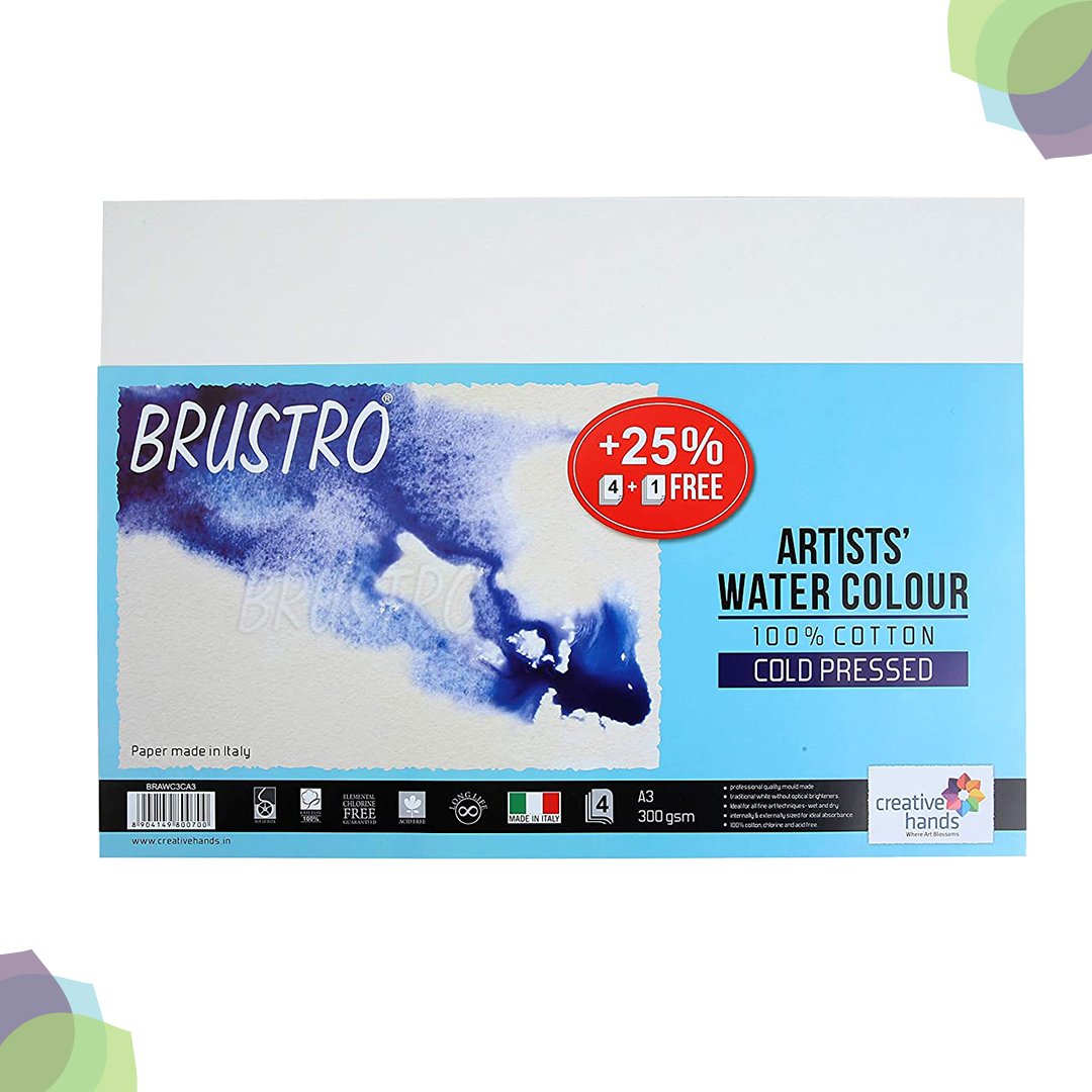| Product Name | BRUSTRO Watercolour Paper 300 GSM A3 Cold Pressed ( 4 + 1 Free Sheet) – 100% cotton, BRUSTRO Watercolour Paper 300 GSM A3 Hot Pressed ( 4 + 1 Free Sheet) – 100% cotton, BRUSTRO Watercolour Paper 300 GSM A3 Rough ( 4 + 1 Free Sheet) – 100% cotton |