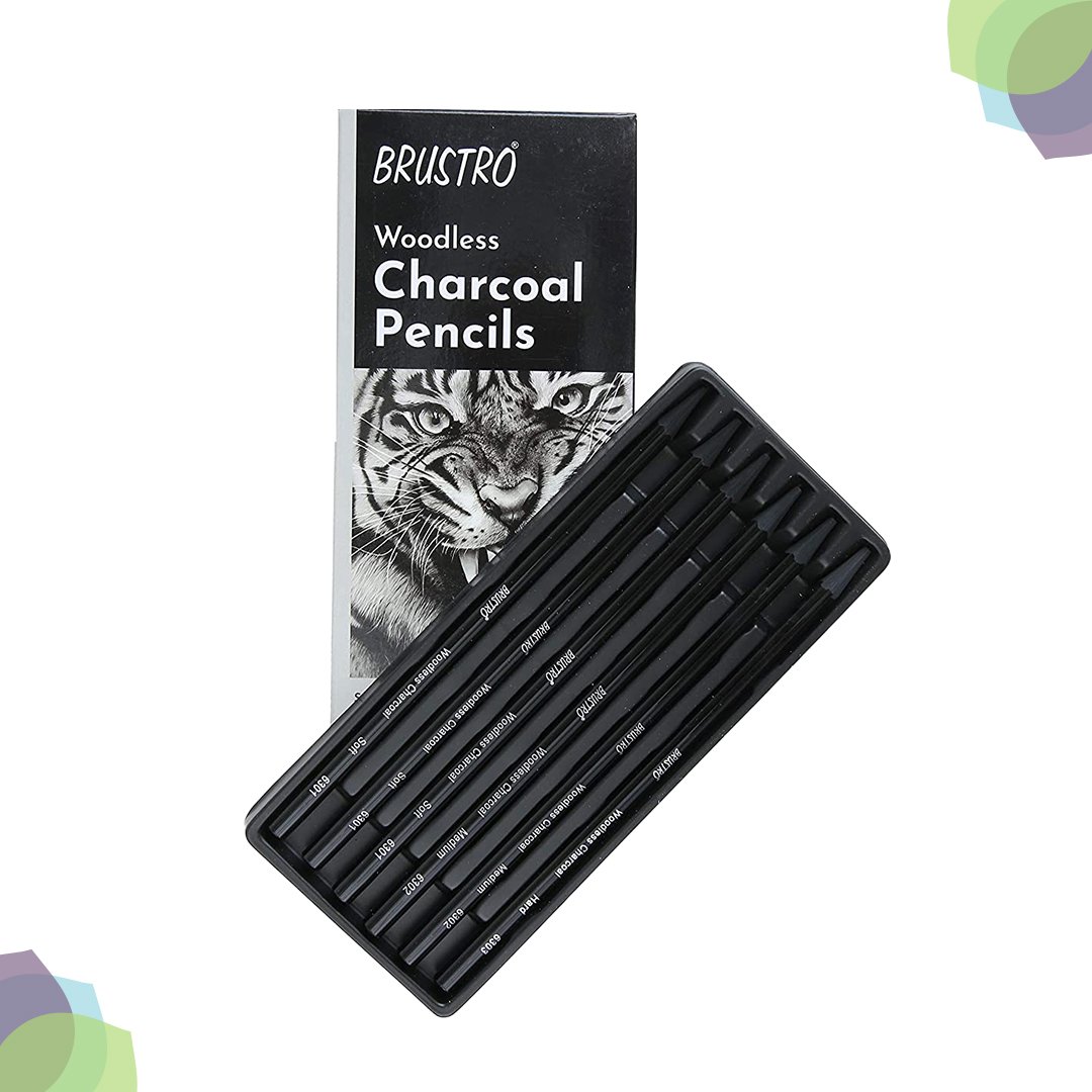 BRUSTRO Woodless Charcoal Pencil Assorted Set of 6