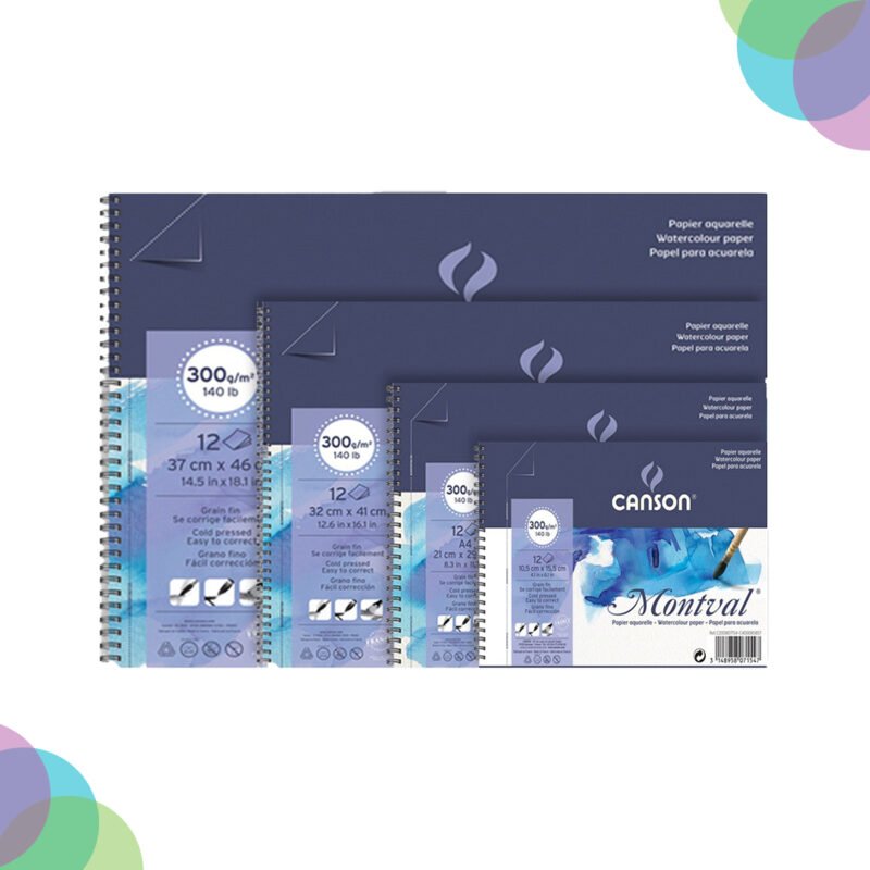 Canson Montval Cold Pressed Spiral Bound On Short Side 300Gsm 10.5X15.5Cm, Canson Montval Cold Pressed Spiral Bound On Short Side 300Gsm 13.5X21Cm, Canson Montval Cold Pressed Spiral Bound On Short Side 300Gsm 21X29.7Cm-A4, Canson Montval Cold Pressed Spiral Bound On Short Side 300Gsm 24X32Cm, Canson Montval Cold Pressed Spiral Bound On Short Side 300Gsm 32X41Cm