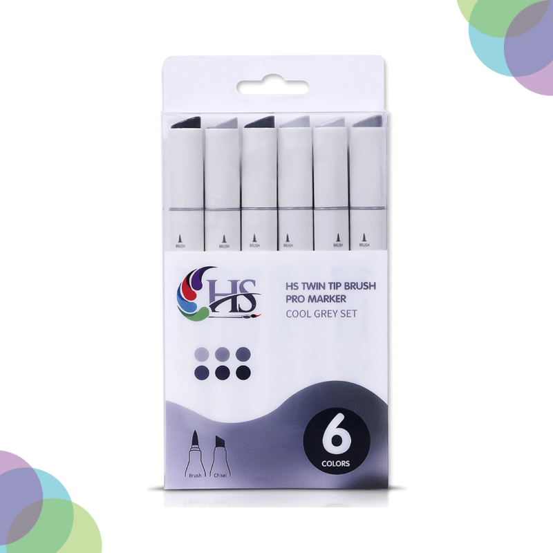 HS Twin Tip Brush Pro Markers Set Of 6 Cool Grey