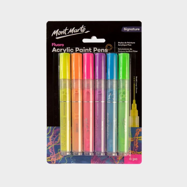 Mont Marte Fluoro Acrylic Paint Pens Broad Tip 6pc