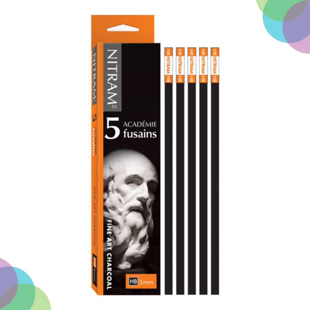 Nitram Academie Fusain HB Medium Charcoal Square 5mm X 5pc