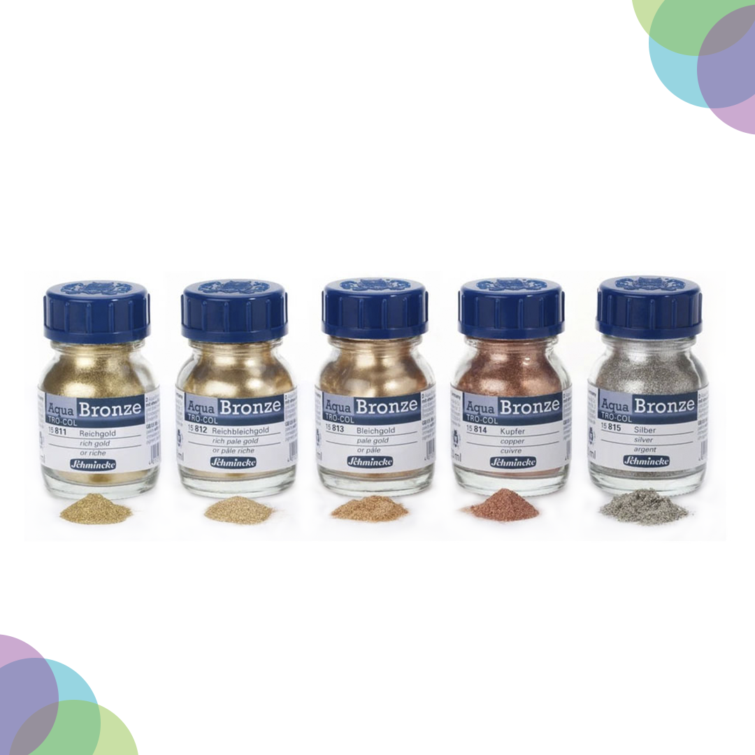| Product Name | Schmincke Aqua Bronze 20ML copper, Schmincke Aqua Bronze 20ML pale gold, Schmincke Aqua Bronze 20ML rich gold, Schmincke Aqua Bronze 20ML rich pale gold, Schmincke Aqua Bronze 20ML silver |
