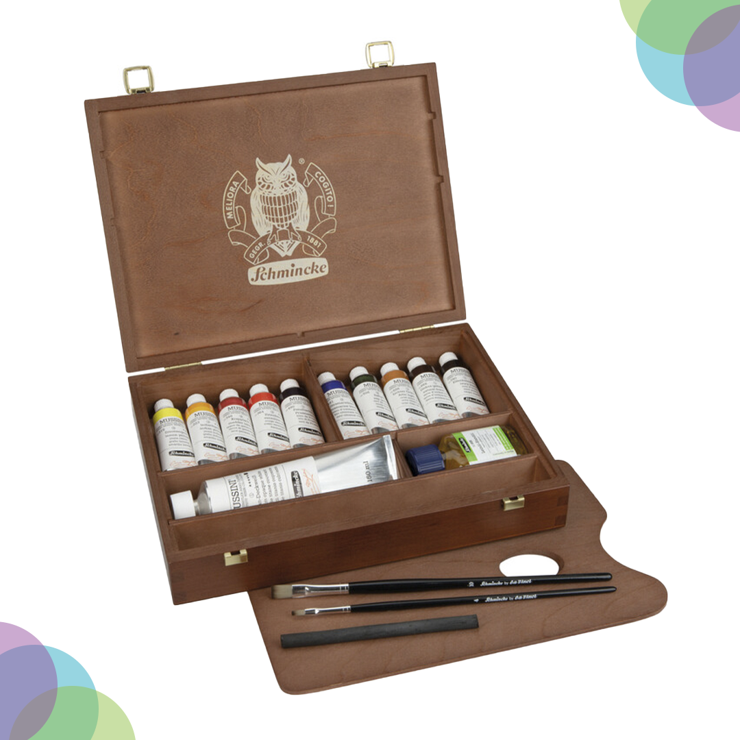 Schmincke Mussini Oil Paint Wooden Box 10 X 35 Ml + White 150 Ml